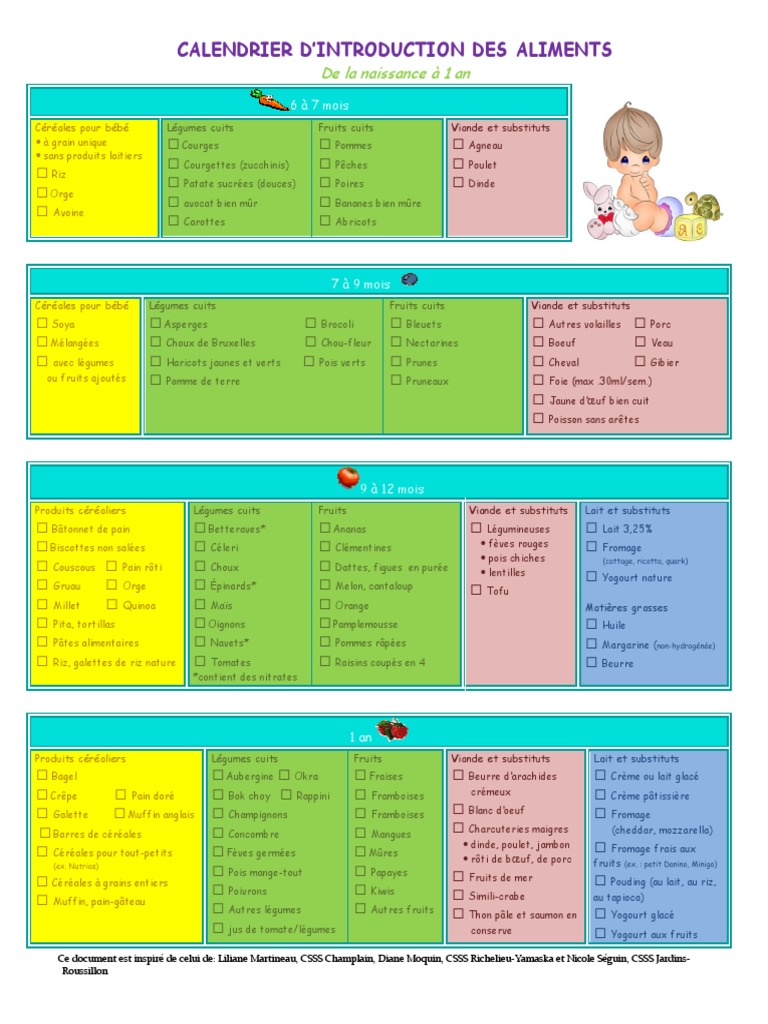 Tableau Diversification Alimentaire Par Age Bebe 6 Mois Et